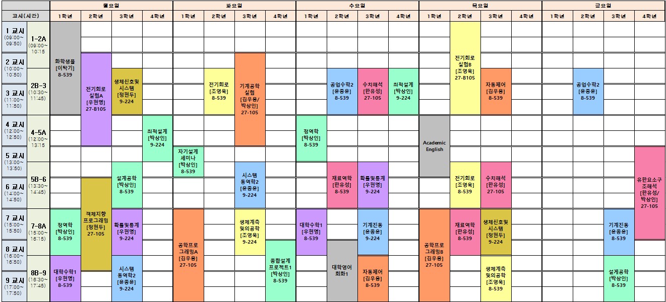 ▣ 바이오-로봇시스템공학과 교과과정표와 교과과정 개정 내역 및 2026-1학기 전공 시간표,