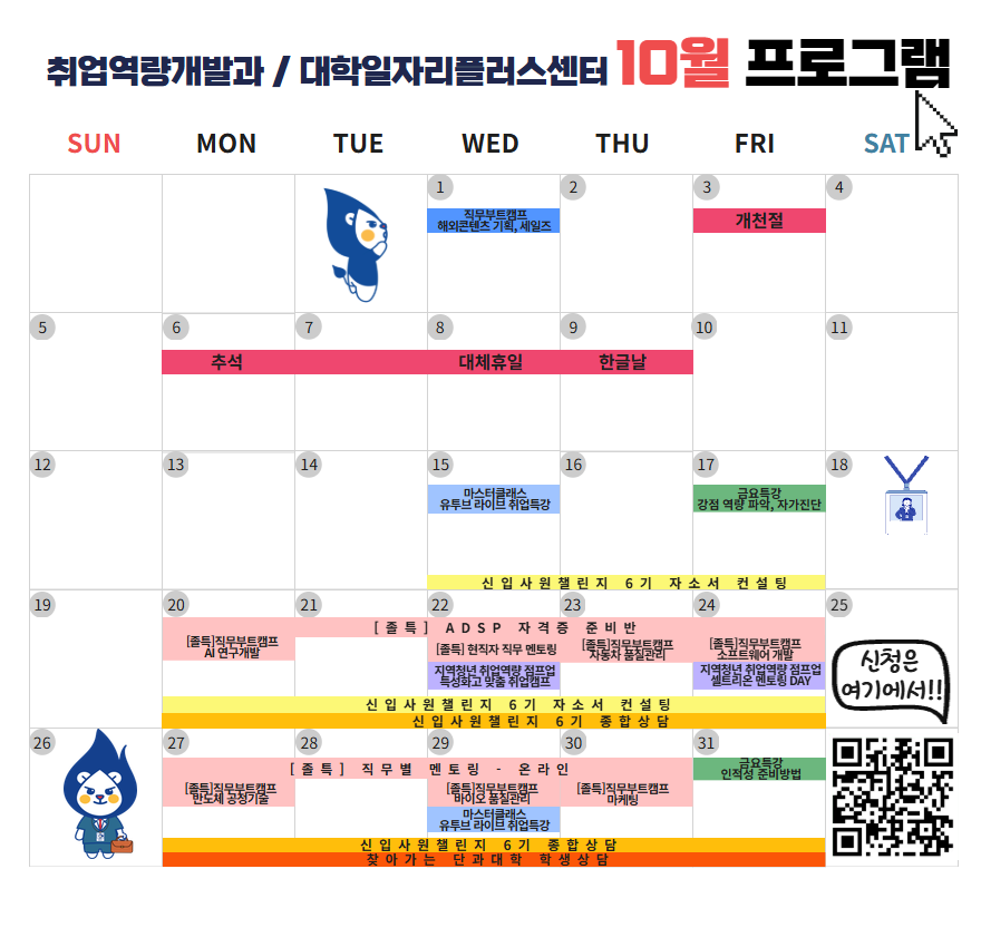 취업경력개발원 / 대학일자리플러스센터 10월 프로그램 일정